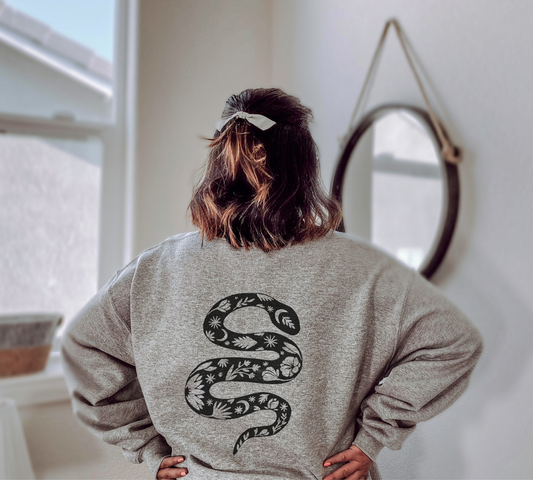 Floral snake sweatshirt, block printed snake with flowers, unisex hand printed crewneck, botanical snake jumper, new year, ethical fashion