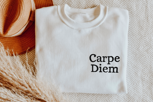 Carpe Diem sweatshirt, unisex hand printed sweater, minimalist crewneck, gift, block print calligraphy, latin saying, ethical fashion