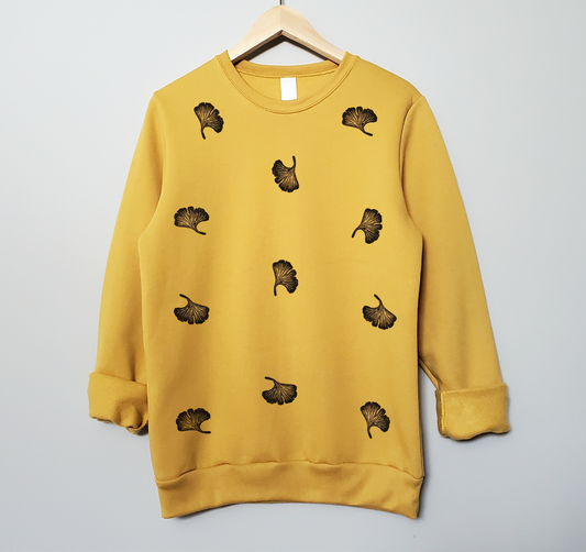Ginkgo leaf print sweatshirt, hand printed unisex crewneck, unique block print plant sweater, ginkgo biloba jumper, ethical fall fashion