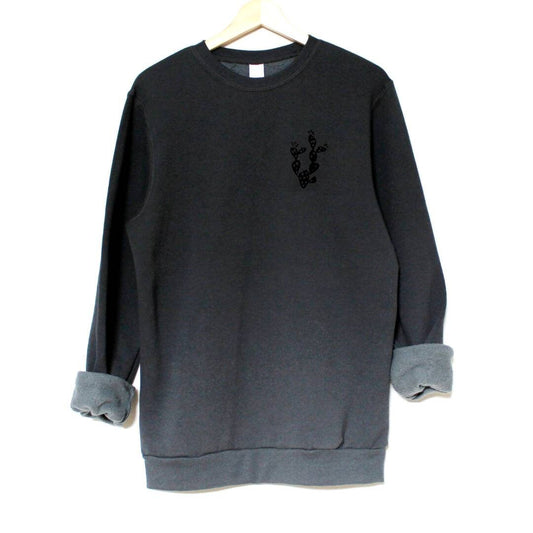 Cactus sweatshirt, bamboo unisex crewneck, succulent block print design, charcoal organic sweater, ethical fashion, plant hand print jumper