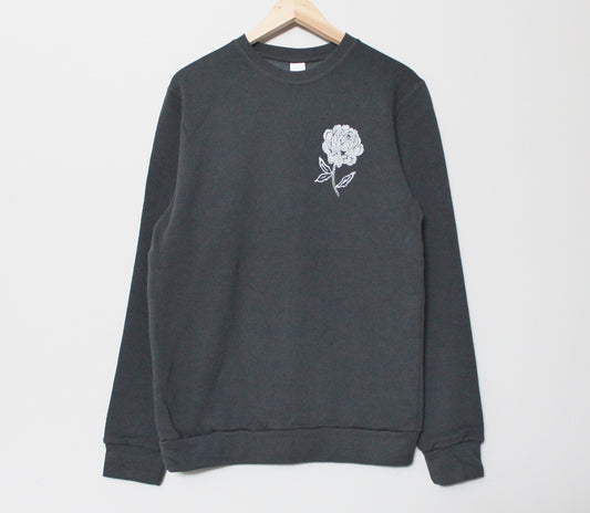 Peony sweatshirt, bamboo UNISEX crewneck, floral botanical vintage white flower, charcoal organic sweater, hand stamped, ethical jumper