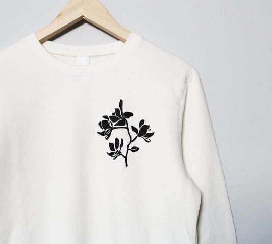 Magnolia flower sweatshirt, bamboo UNISEX crewneck, floral botanical print, natural organic coton sweater, hand stamped, ethical fashion