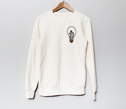 Floral graphic UNISEX sweatshirt, hand painted light bulb with gold flowers, natural organic bamboo sweater, ethical fashion