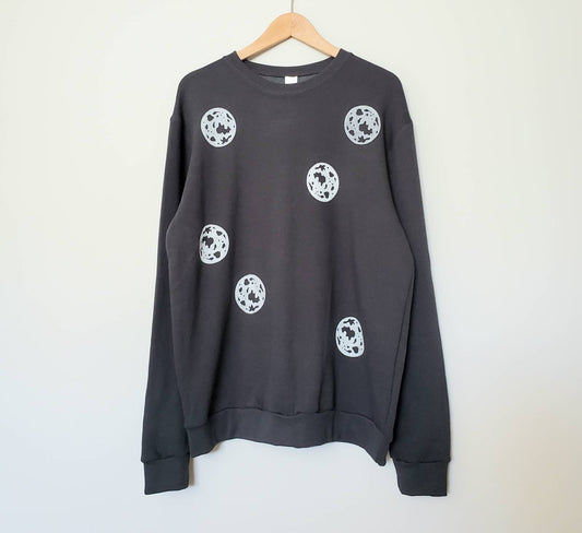 Moon sweatshirt, bamboo UNISEX crewneck, full moon pattern, charcoal organic sweater, hand stamped block print soft jumper, ethical fashion