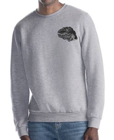 Dinosaur bamboo unisex sweatshirt, t-rex block print design, charcoal organic fleece crewneck sweater, ethical fashion, soft dino jumper