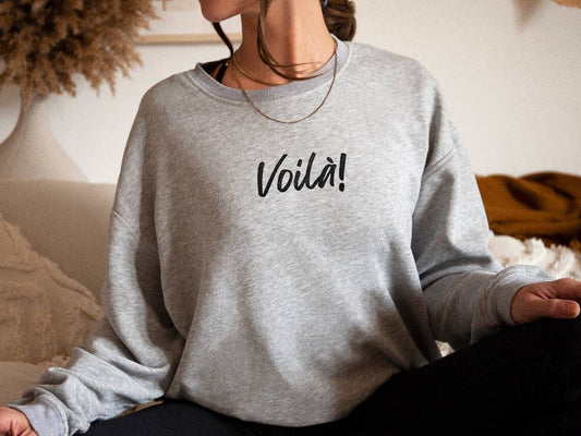Voilà sweatshirt, bamboo UNISEX crewneck, french graphic print, natural organic coton sweater, hand stamped, block print, ethical fashion
