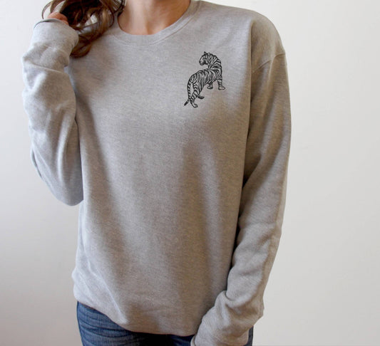 Tiger bamboo unisex sweatshirt, wild cat block print design, charcoal organic crewneck sweater, ethical fashion, soft natural jumper