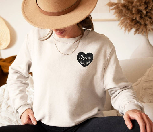 Love sweatshirt, bamboo UNISEX crewneck, love graphic heart print, natural organic cotton sweater, hand stamped, block print, ethical fashion