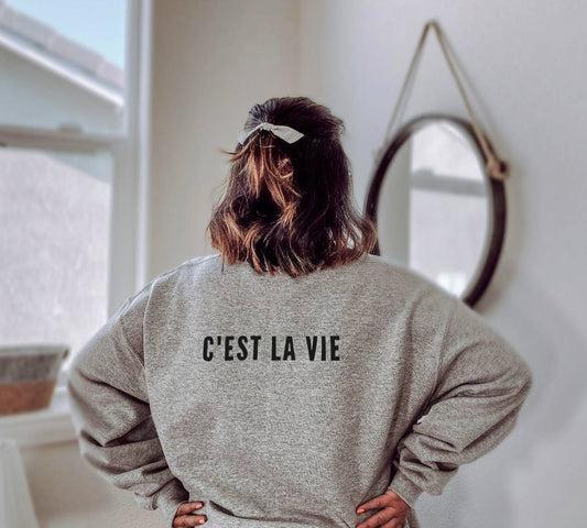 C'est la vie sweatshirt, bamboo UNISEX crewneck, french graphic print, natural organic coton sweater, hand stamped, ethical fashion