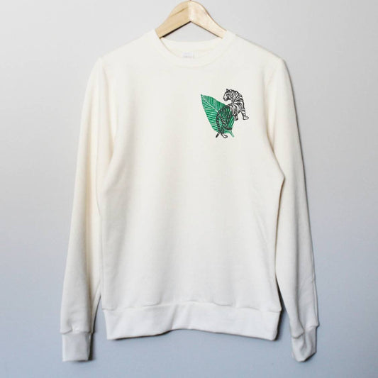 Tiger with green leaf bamboo unisex sweatshirt, wild cat block print design, organic crewneck sweater, ethical fashion, soft natural jumper