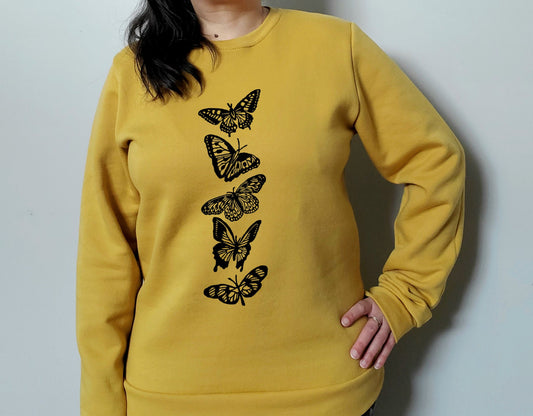 Butterfly print sweatshirt, hand printed unisex crewneck, butterflies print design, block print insect, soft cute jumper, ethical fashion