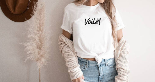 Voilà t-shirt, hand printed UNISEX tshirt, french quote tee, graphic calligraphy print, minimalist fashion, unique gift, ethical fashion