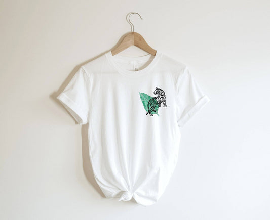 Tiger and plant t-shirt, UNISEX hand printed tshirt, animal block print tee, hand stamped illustration, clothing, ethical fashion
