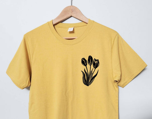 Tulip t-shirt, hand printed unisex flower tee, minimalist floral design, unique block print tshirt, soft summer shirt, ethical fashion